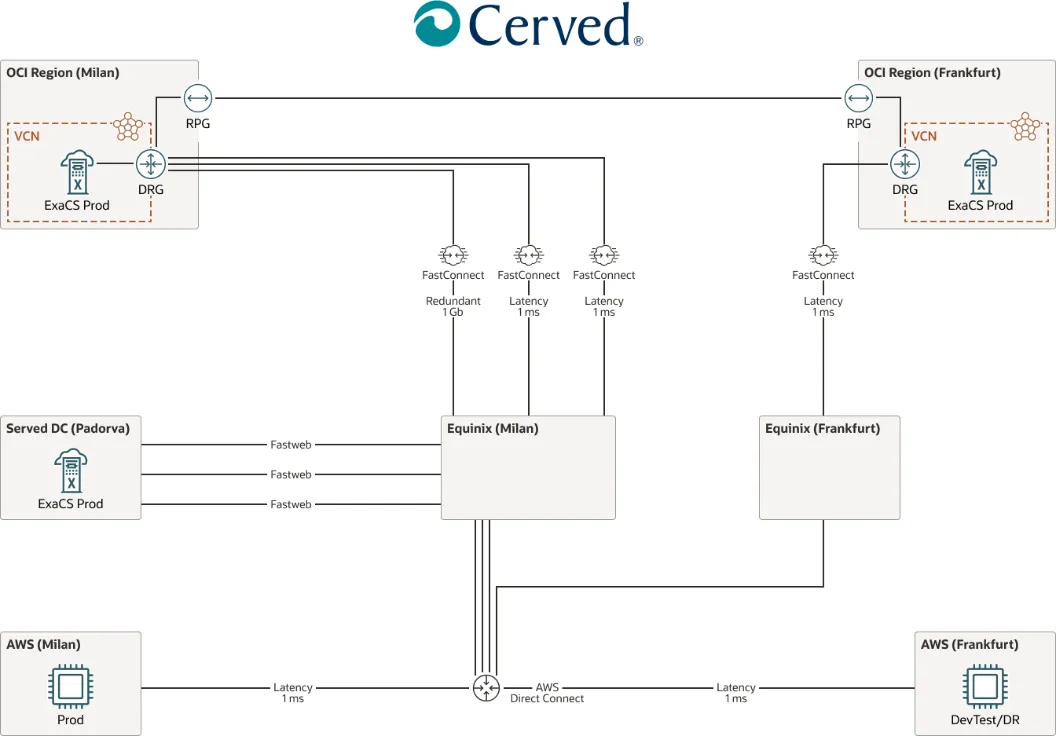 By consolidating 44 databases to six and migrating to a dedicated Oracle Exadata Database Service and OCI, Cerved automated backup, which freed staff for more productive architecture tasks and faster development with new data sets. Oracle FastConnect also allows multilcoud with AWS, where Cerved’s custom applications are hosted, delivering low latency of 2 milliseconds. This streamlining brought more intelligent risk solutions to customers.
