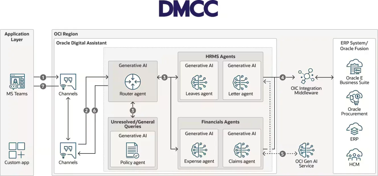 DMCC boosts the flow of global trade through Dubai and is revolutionizing operations and employee experiences by adopting Oracle Generative AI (GenAI). By embracing cutting-edge AI solutions, DMCC is, automating key processes and redefining digital efficiency for businesses within its ecosystem. As a pioneer in AI adoption, DMCC is setting a new benchmark for innovation, automation, and seamless digital experiences.
