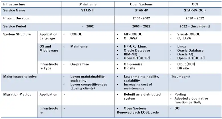 By 2000, NRI recognized that the mainframe environment lacked the maintainability and scalability they needed to remain a market leader. To improve competitiveness in the market, NRI opted to move THE STAR from the mainframe to an open systems architecture. The new platform that serviced THE STAR from 2003-2022 was based on Micro Focus COBOL, HP-UX and Linux servers, and the Oracle database.