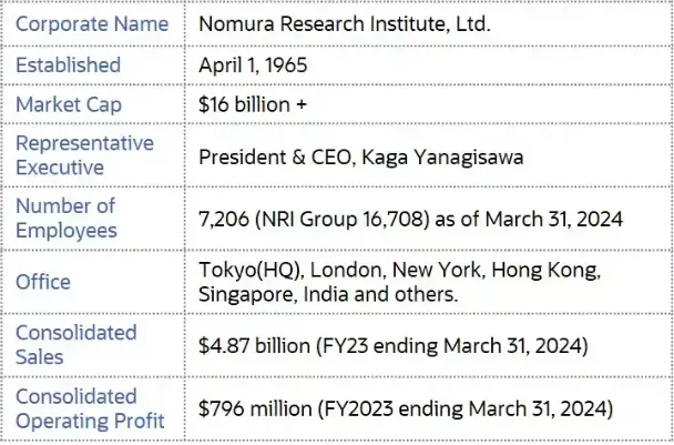 Nomura Research Institute is Japan’s leading consulting and IT solutions provider. Established in 1965 as a spin-off from Nomura, today NRI has more than 16,000 employees in more than 50 offices globally, including New York, London, Tokyo, Hong Kong, and Singapore.