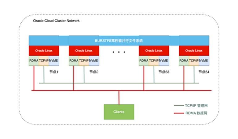 BurstFS运行在 OCI 的逻辑架构如下图: