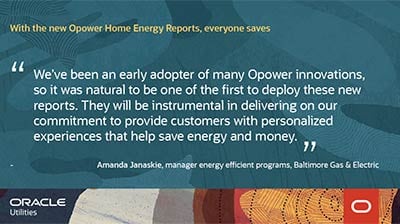 “For more than ten years, Opower has been instrumental in engaging our customers through a range of behavioral techniques and communications channels,” said Amanda Janaskie, manager energy efficient programs, Baltimore Gas & Electric. “We’ve been an early adopter of many Opower innovations, so it was natural to be one of the first to deploy these new reports. They will be instrumental in delivering on our commitment to provide customers with personalized experiences that help save energy and money.”