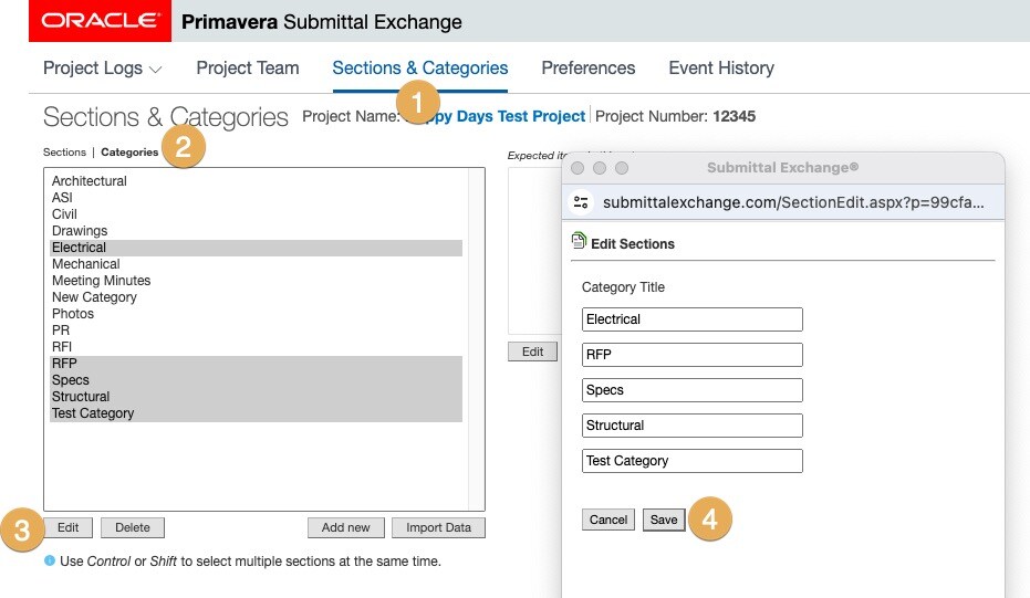 Click on Categories to edit. You can click on multiple categories by pressing CTRL and clicking on all sections to edit.