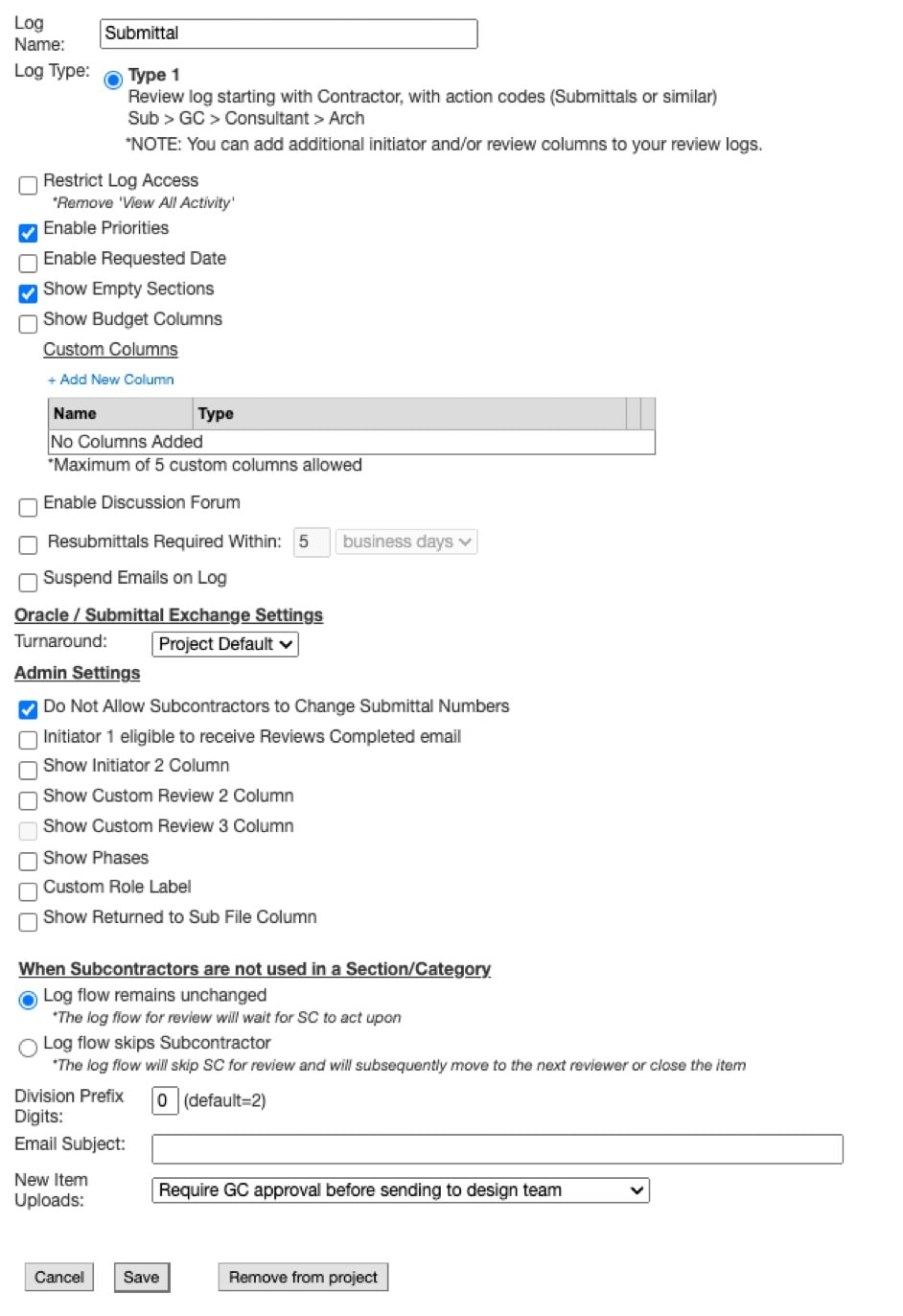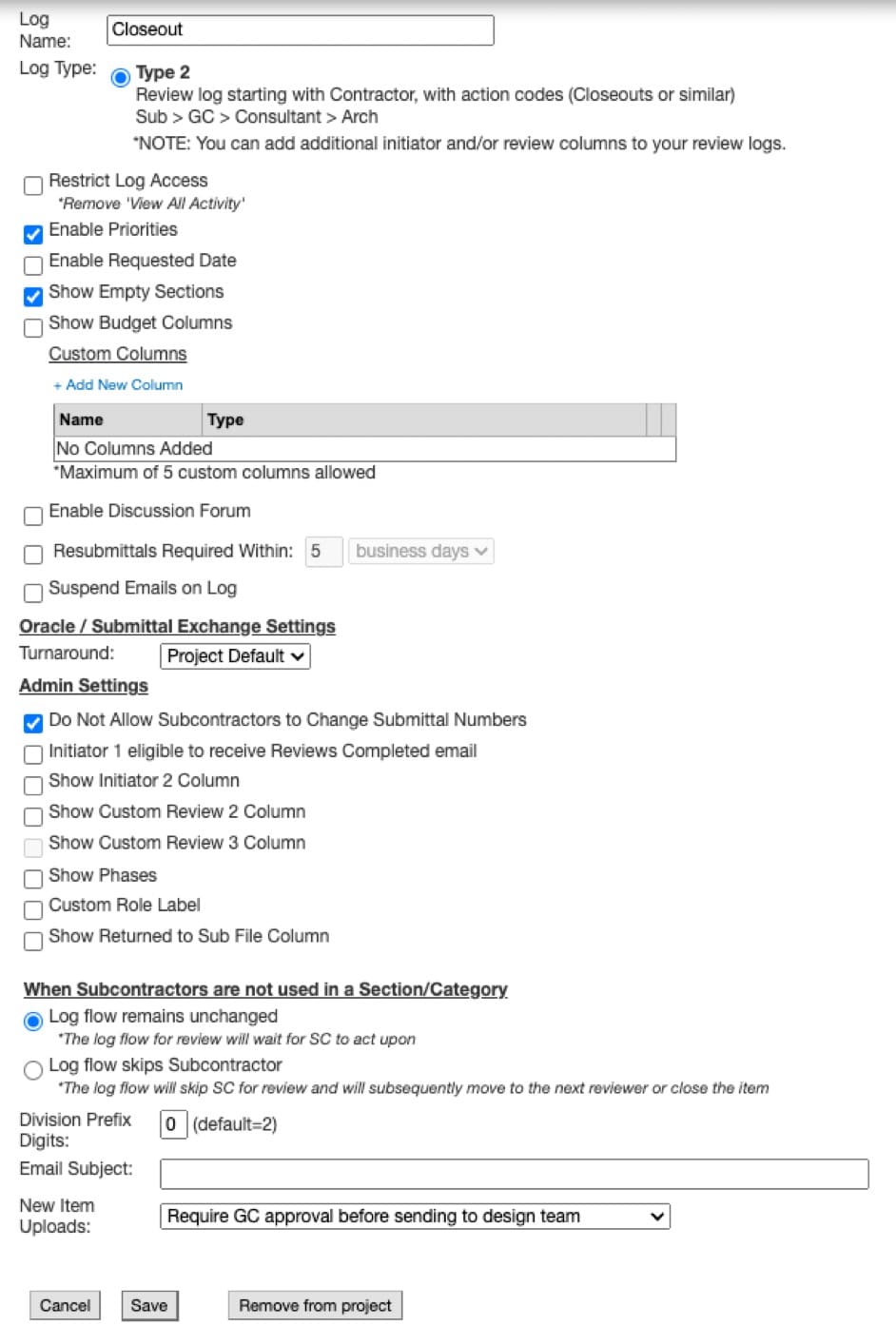 After the Construction team iniaties the log, the review process follows these steps: Subcontractor → General Contractor → Consultant → Architect.