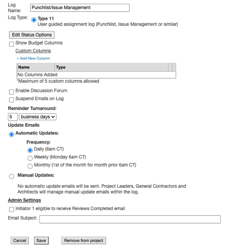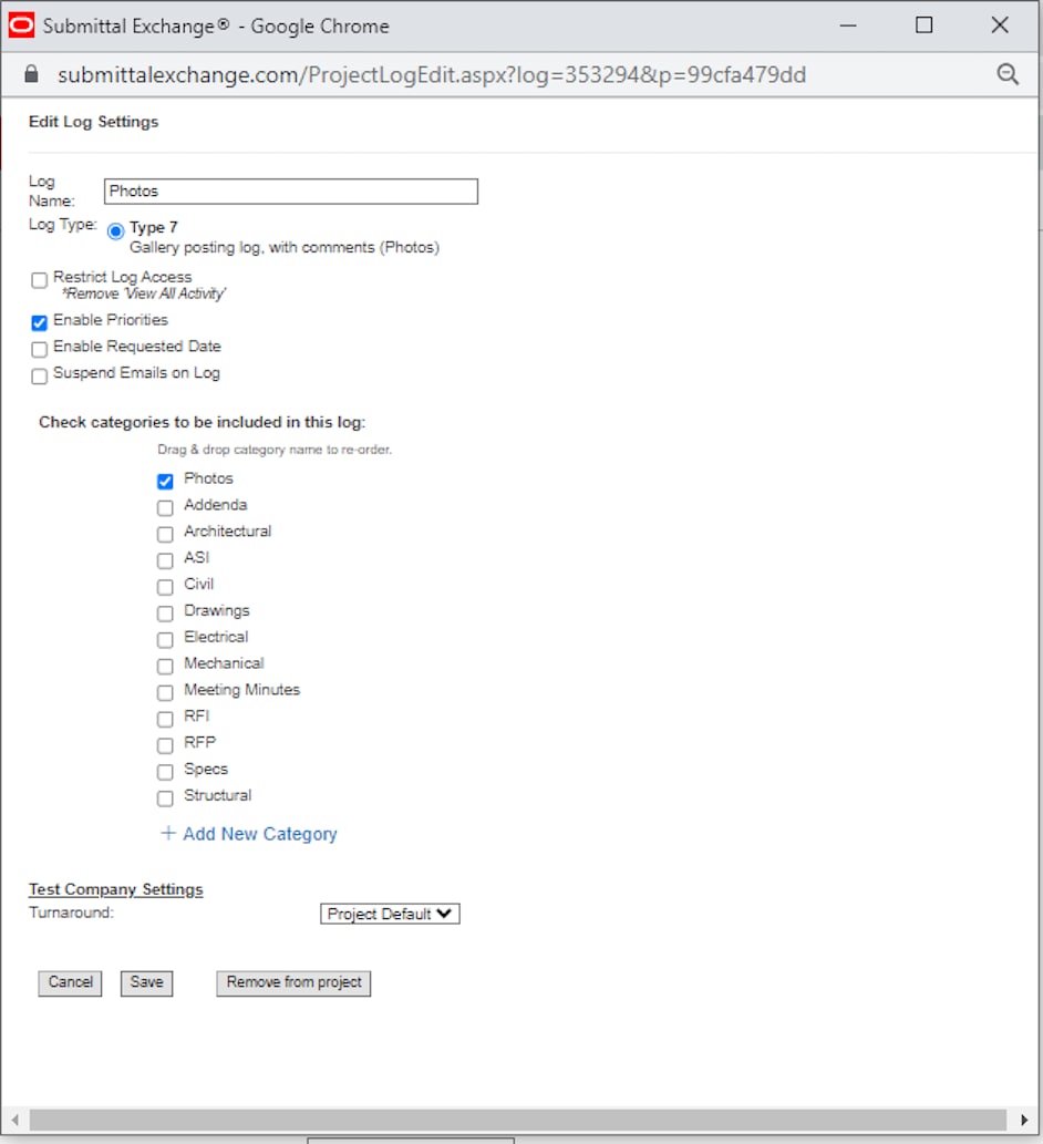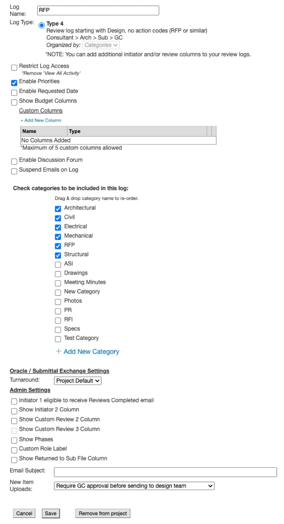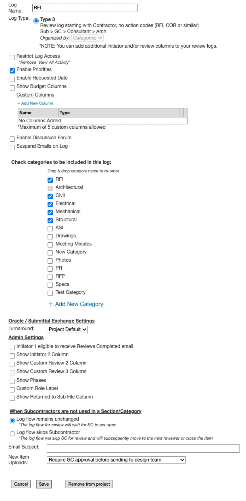 The Construction team can also initiate Log Type 3, which is for categories like Request for Information (RFI) or Change Order Requests (COR).