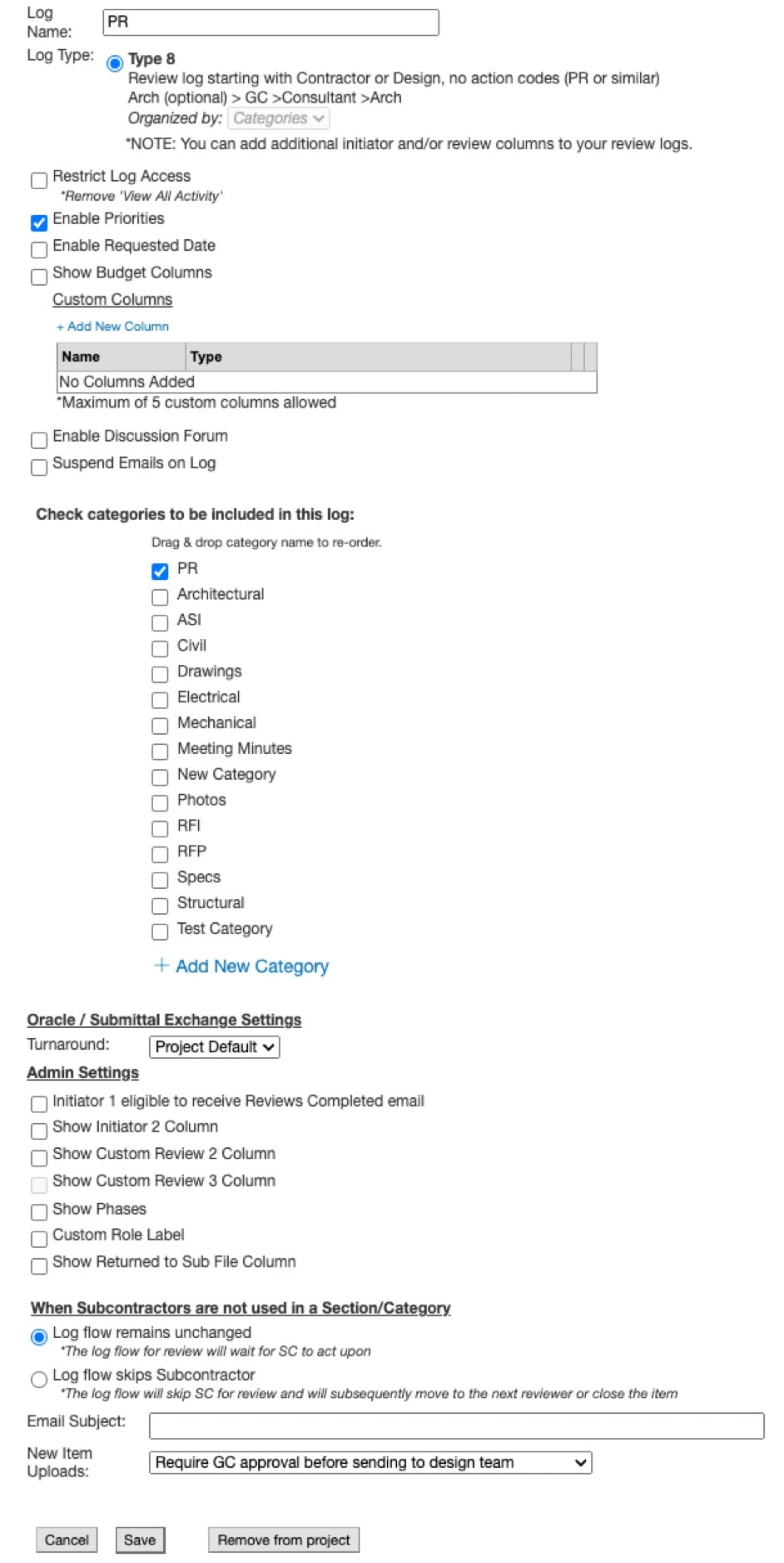 After the Construction team iniaties the log the review process follows these steps: Subcontractor → General Contractor → Consultant → Architect.