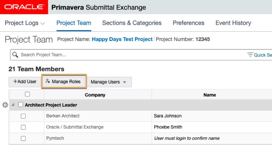 Roles allocate specific functions to users in Submittal Exchange. The most common are: