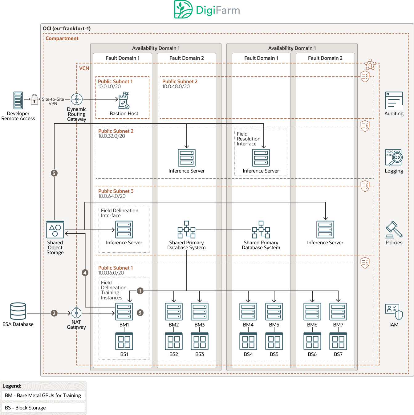 OCI includes all the services needed to migrate, build, and run IT in the cloud, from existing enterprise workloads to new cloud native applications and data platforms. DigiFarm used the following OCI services and technologies: