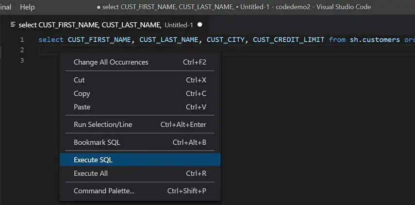 cmd.CommandText = "select CUST_FIRST_NAME, CUST_LAST_NAME, CUST_CITY, CUST_CREDIT_LIMIT " +