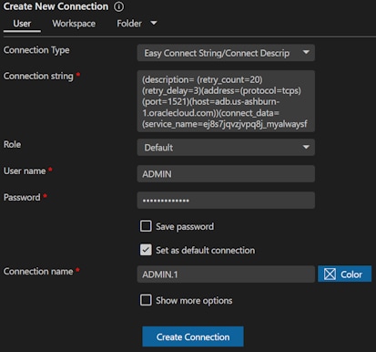 Before proceeding with the steps below, you will need to obtain the connection string for your Oracle Autonomous Database and you may need to configure the database for walletless connections.