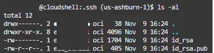 Wenn Sie zum ersten Mal SSH-Schlüssel in Cloud Shell erstellt haben, werden nur die beiden Dateien angezeigt. Schützen Sie den Private Key und geben Sie ihn nicht weiter. Der Public Key wird für bestimmte Aktivitäten benötigt und kann auf einige Systeme hochgeladen sowie kopiert und eingefügt werden, um eine sichere Kommunikation in der Cloud zu ermöglichen.