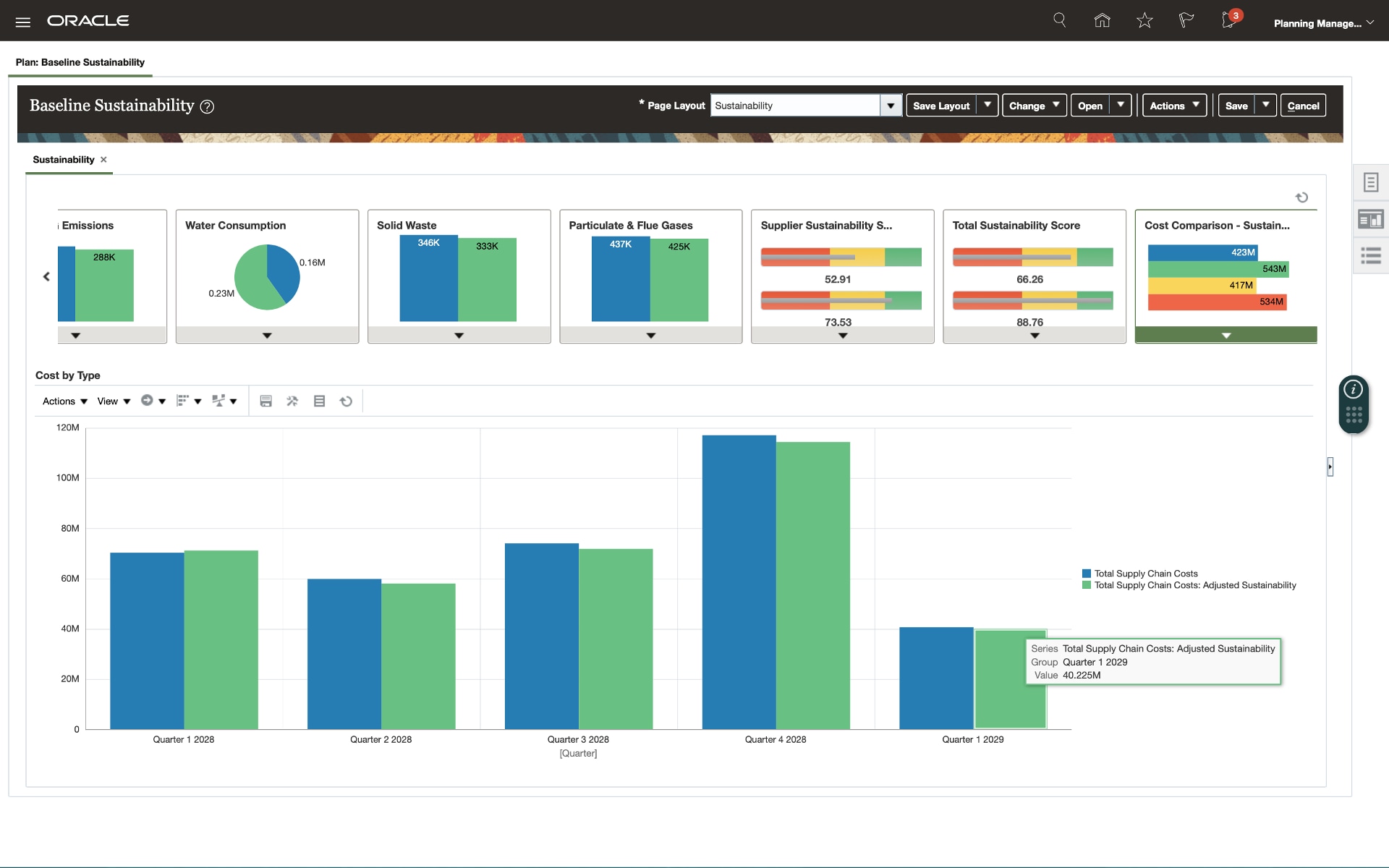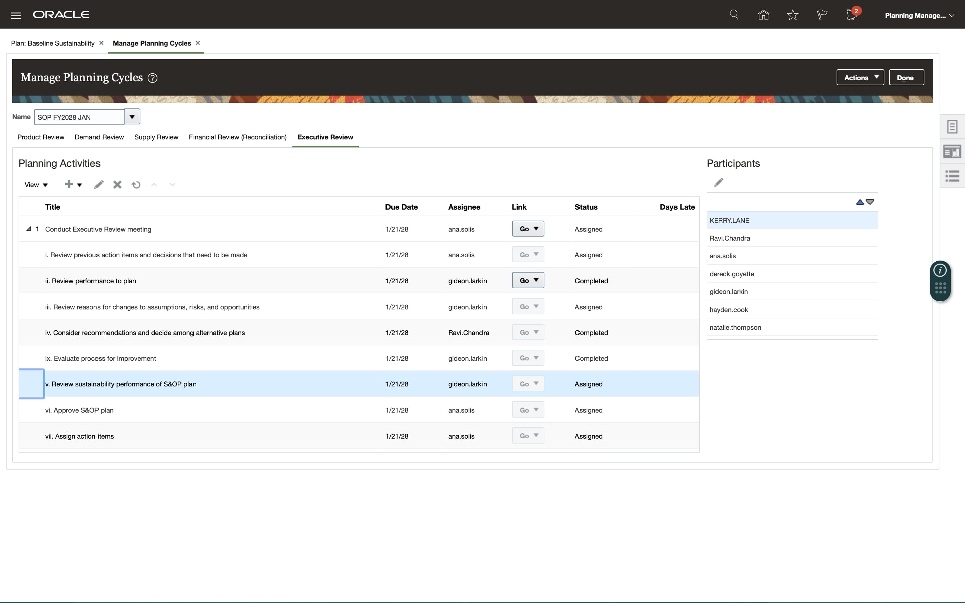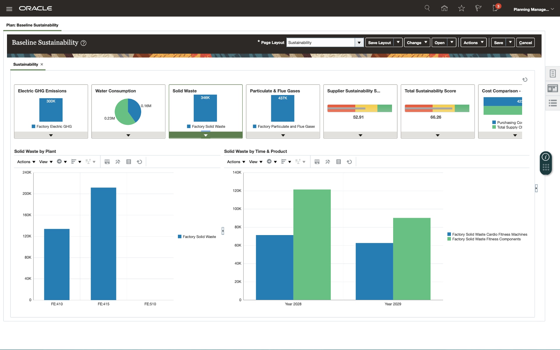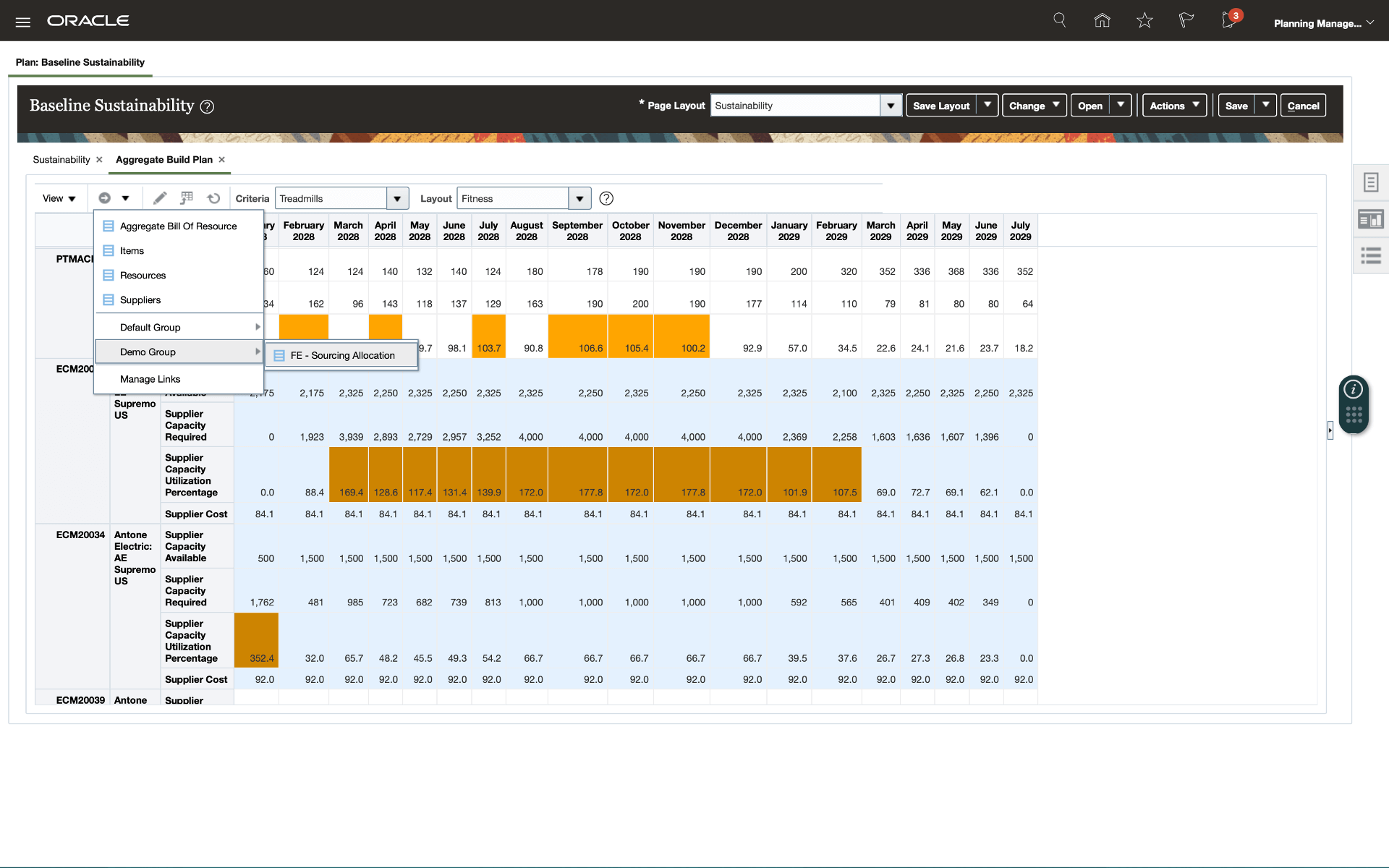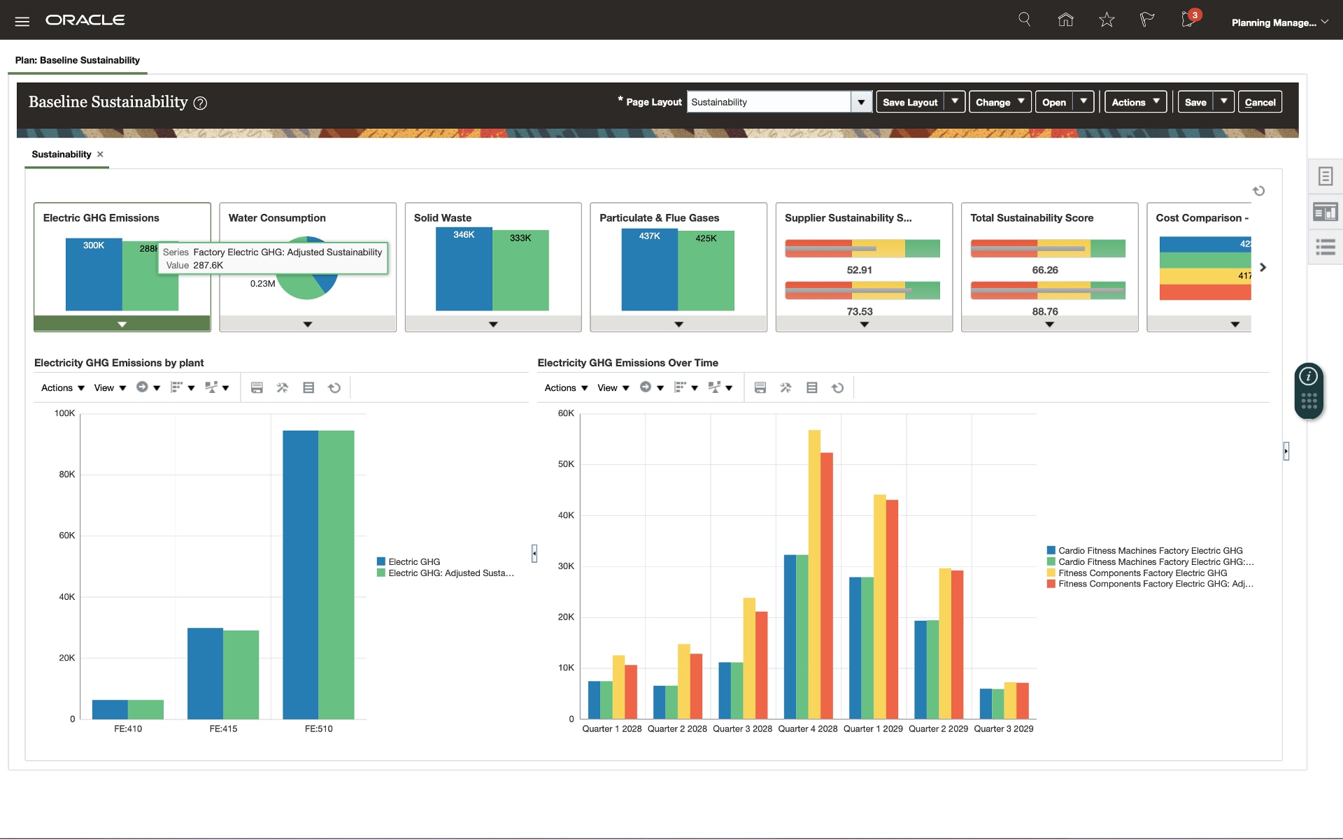 Beschleunigen Sie Ihre Nachhaltigkeitsinitiativen, indem Sie Nachhaltigkeitskennzahlen über die gesamte Lieferkette hinweg in Oracle Fusion Sales and Operations Planning integrieren.
