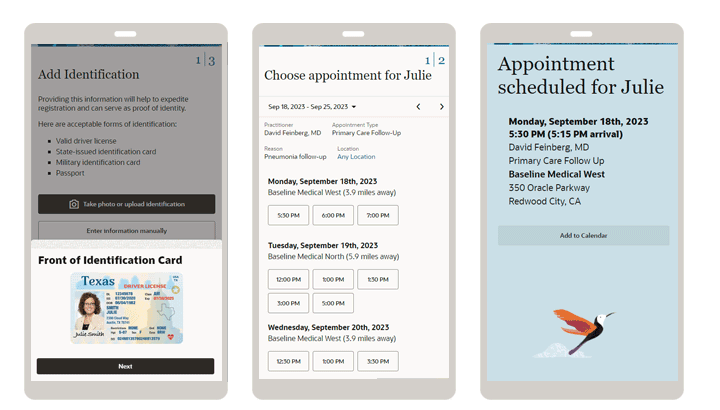 Oracle Health is relentlessly supporting digital patient engagement through digital innovations by creating solutions that help bridge the gap between patients and their healthcare journeys. We are building cutting-edge digital patient engagement solutions—powered by Oracle technologies—that adapt to the evolving healthcare landscape and also empower individuals to take charge of their health and well-being. Our self-registration and self-scheduling solutions give patients the autonomy to complete their registration profile and schedule appointments without the need to call the scheduling staff.