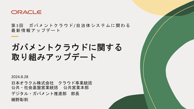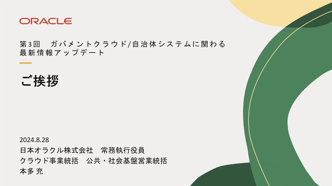 2024年8月28日開催 第3回 ガバメントクラウド/自治体システムに関わる最新情報アップデートにおいて、日本オラクル株式会社 常務執行役員 クラウド事業統括 公共・社会基盤営業統括 本多 充より一連のセミナー動画のポイントをご紹介します。