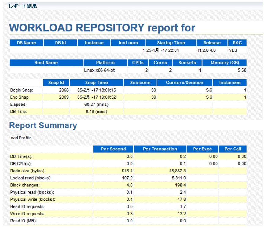 従来と同じ方式で性能/障害分析を行う場合、EMからAWRレポートを出力させることが出来ます。出力させたAWRレポートはHTML形式でクライアント側に保存することも出来るので、後追いでの分析も可能です。