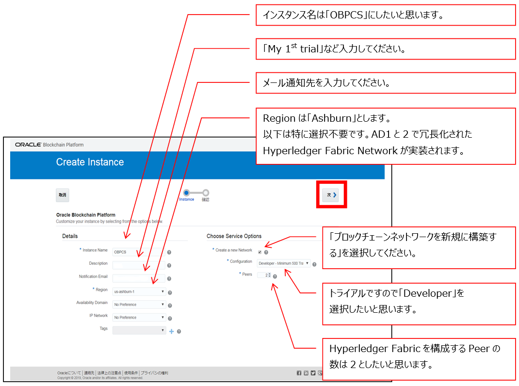 • Step2:Oracle Blockchain Platform Cloud Serviceインスタンスの作成