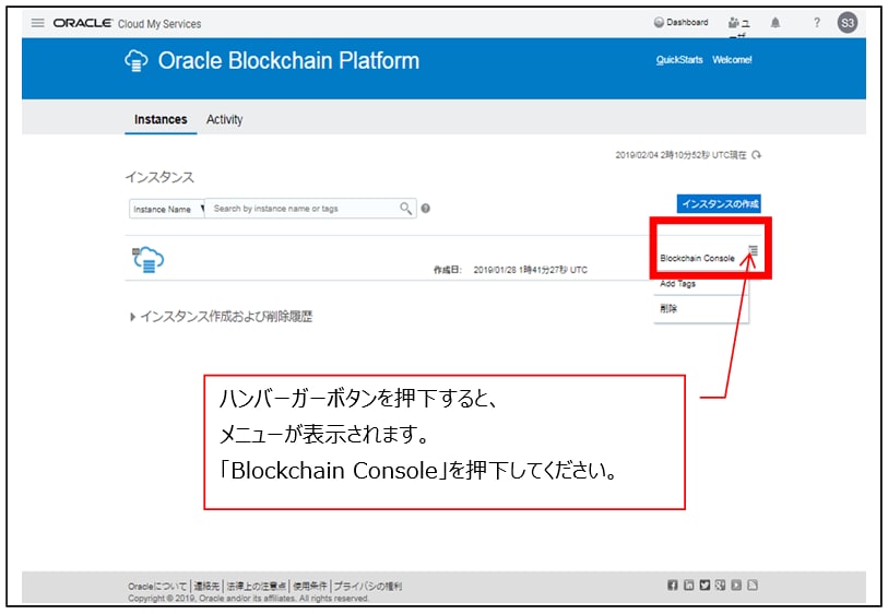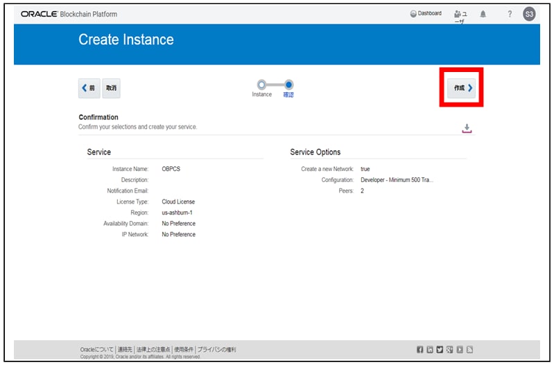 2. Oracle Blockchain Platform Cloud Serviceインスタンスの作成