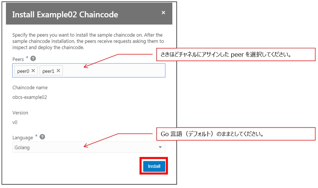 デプロイするチェーンコードはOracle Blockchain Platform Cloud Serviceのサンプルを用いたいと思います。