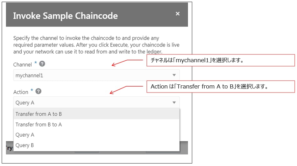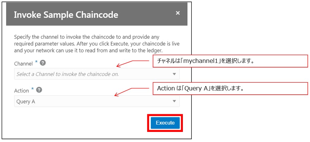 Action「Query A」を実行したのですが、サンプルチェーンコードを見てみたいと思います。