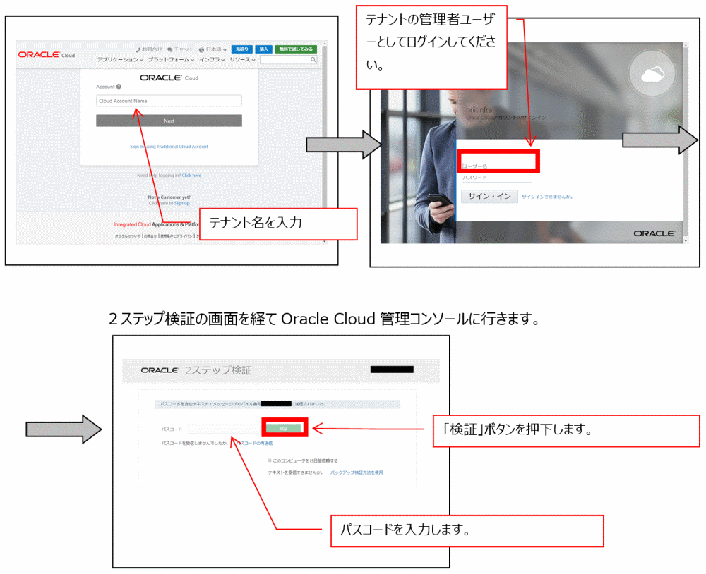 テナント管理者ユーザーとしてログインしてください(OKE-adminではありません。注意してください)