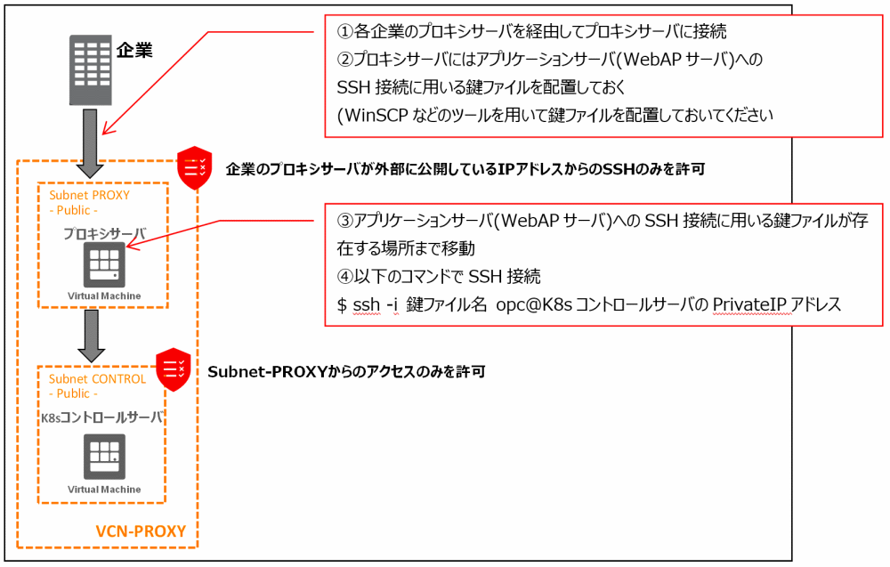 それではOCL CLIがセットアップされているK8sコントロールサーバに接続したいと思います。接続の概要を説明します。
