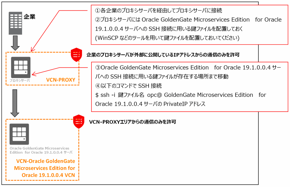 [opc@プロキシサーバのhostname 鍵ファイル置き場]$ ssh -i myrsa opc@Oracle GoldenGate Microservices Edition for Oracle 19.1.0.0.4サーバのPrivateIPアドレス
