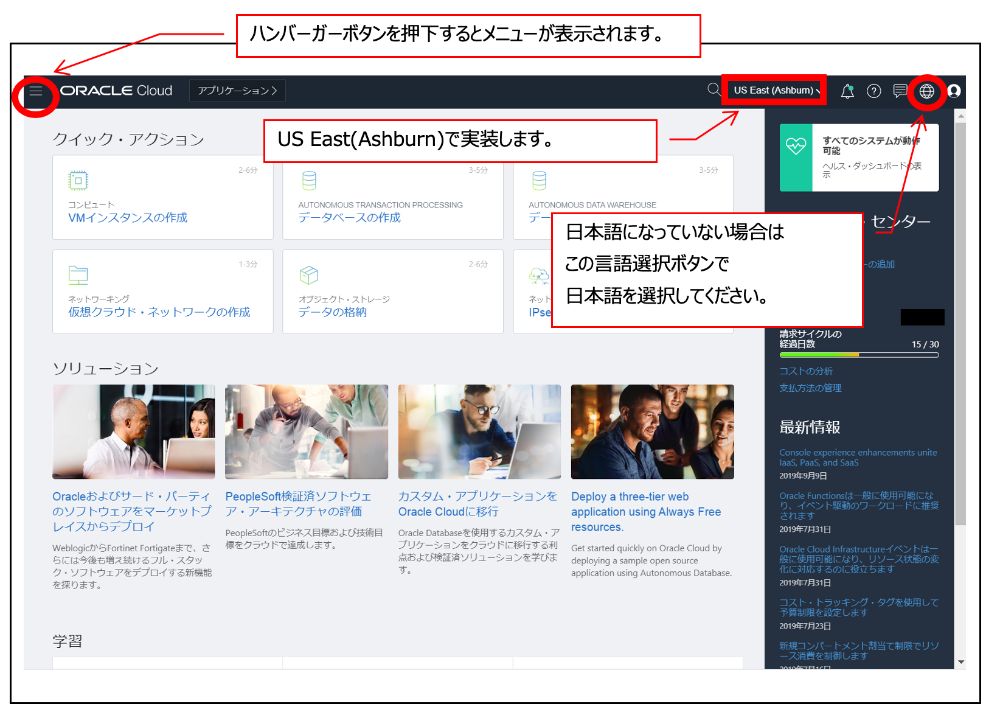 早速Oracle Cloud管理コンソールへログインしてみましょう。URLは以下です。