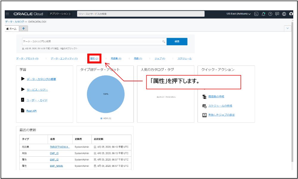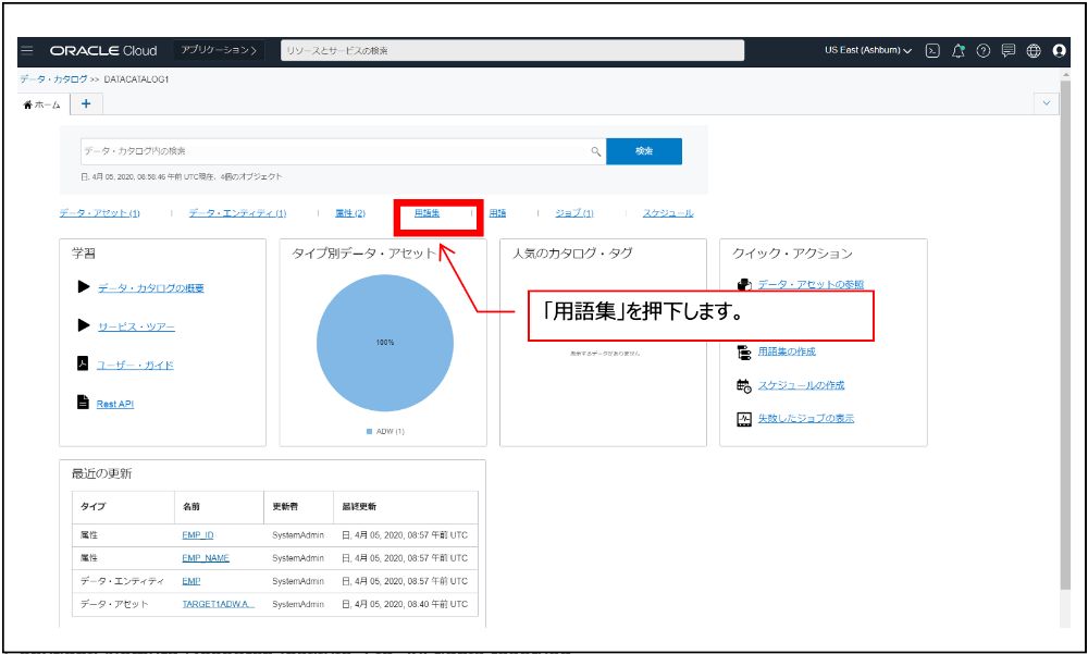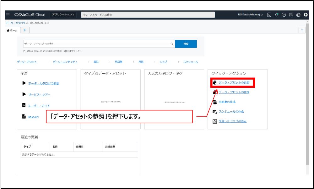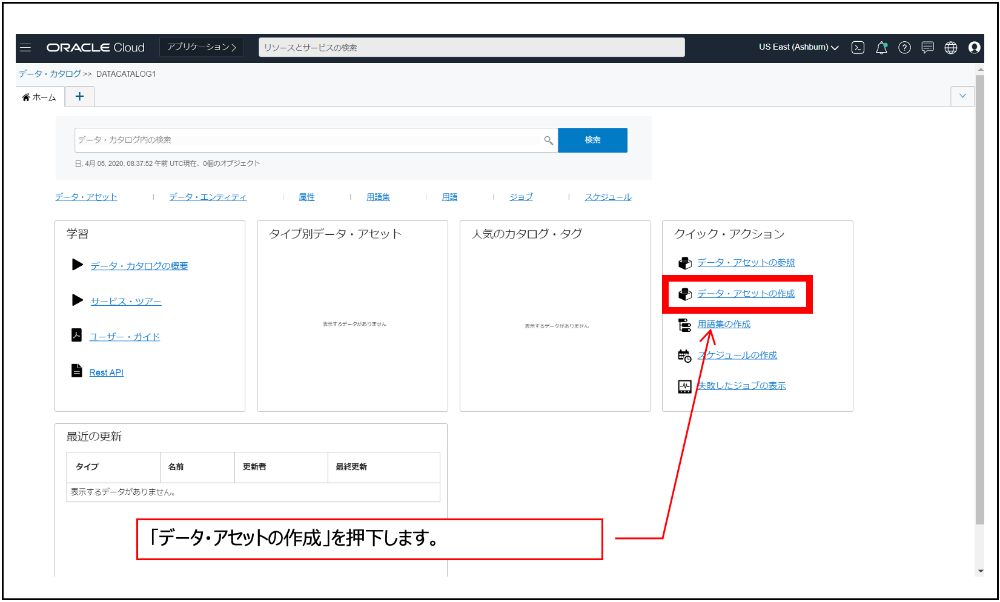 データ・カタログのTOP画面です。次にデータ・アセットを作成していきます。