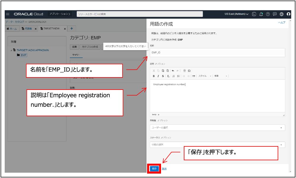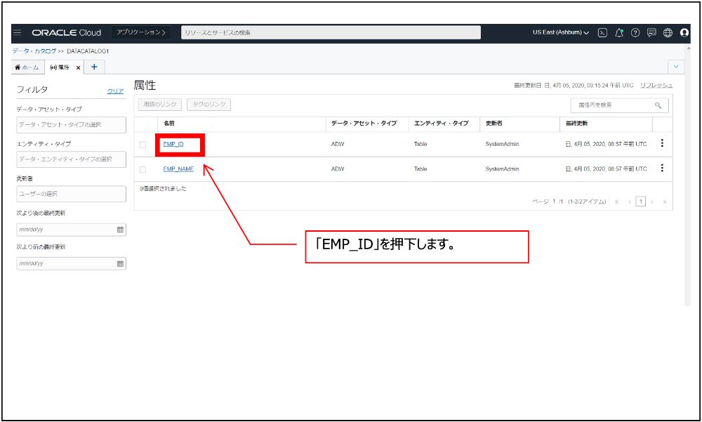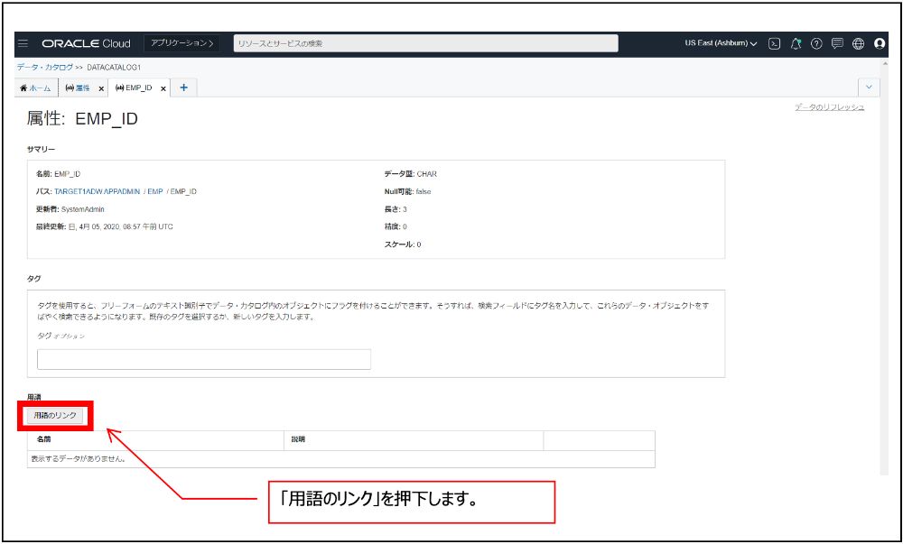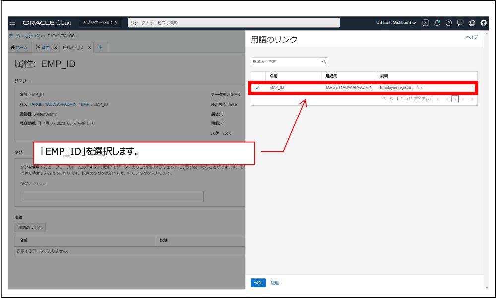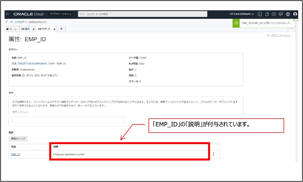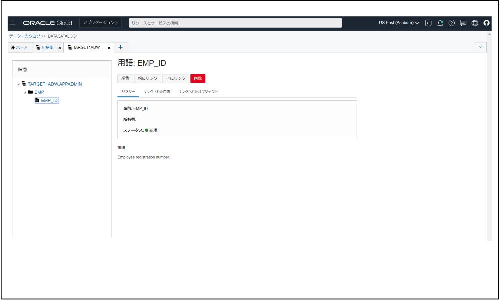 「EMP_ID」のデータ・グロッサリーを行うことができました。