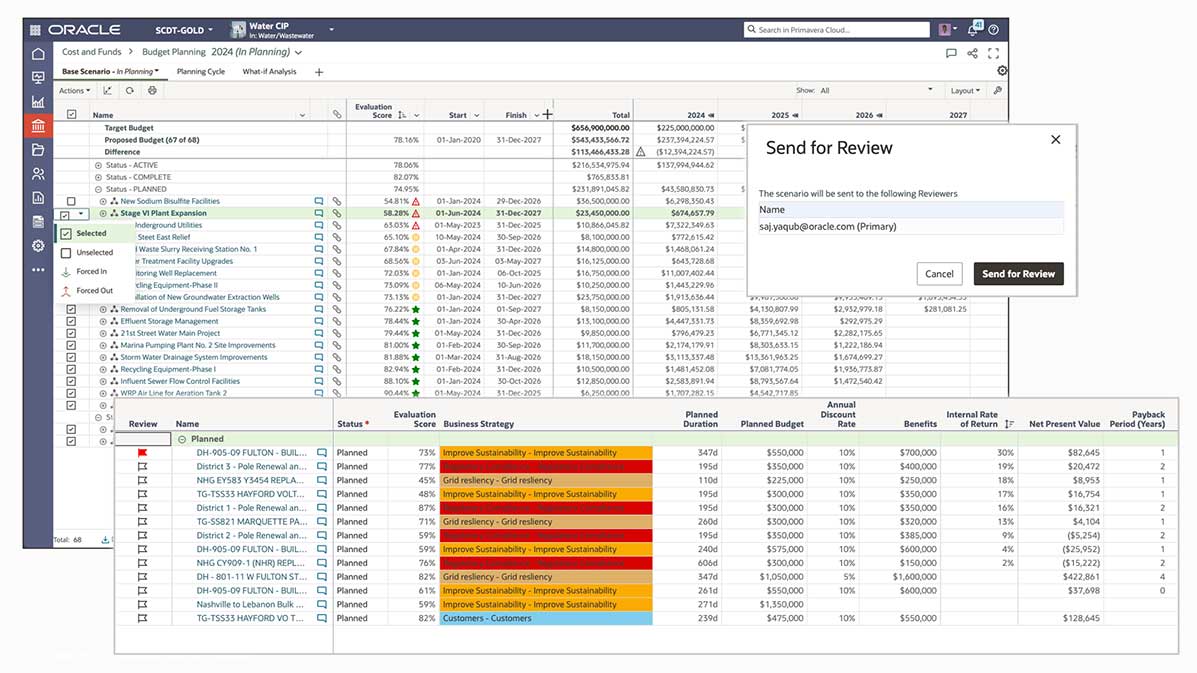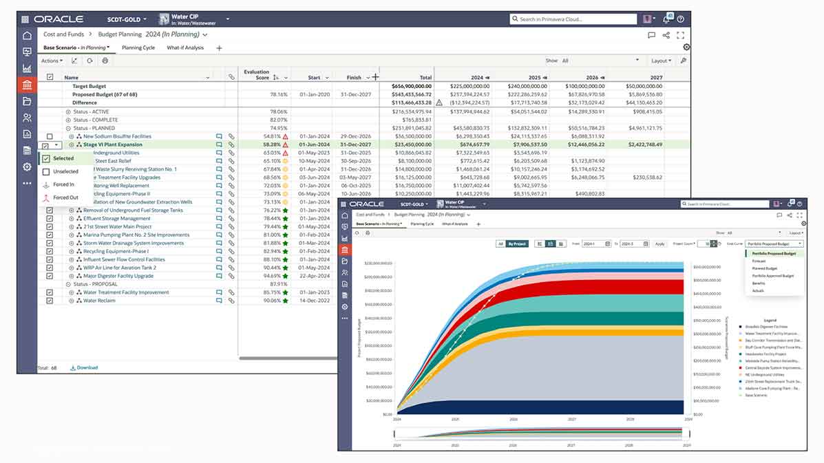 자본 계획자의 입장에서, 모든 길은 결국 예산 계획으로 이어집니다. What-if 시나리오를 사용하여 프로젝트를 제거, 프로젝트 구문 분석 또는 프로젝트 시작 일자 이동과 같은 조정 작업을 수행할 수 있습니다. 이러한 조정 및 절충 능력을 사용하여 프로젝트 포트폴리오를 목표 예산 내에 맞출 수 있습니다.