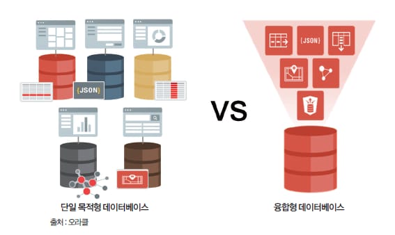그럼에도 오라클이 융합형 데이터베이스를 주창하는 이유는 무엇일까. 가장 큰 이유는 데이터 타입별로 데이터베이스를 달리 쓸 경우 데이터 관리가 힘들어진다는 것이다. 거꾸로 얘기하면 융합형 데이터베이스는 고객이 여러 개의 데이터베이스를 유지·관리해야 하는 부담을 줄일 수 있다는 의미다.