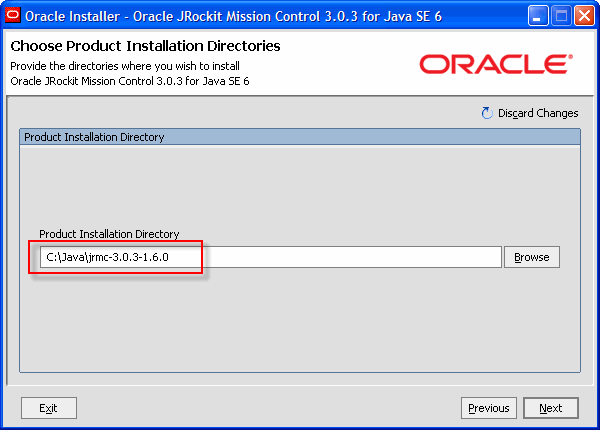 2.In the second installer screen you specify where you wish to install JRockit Mission Control.