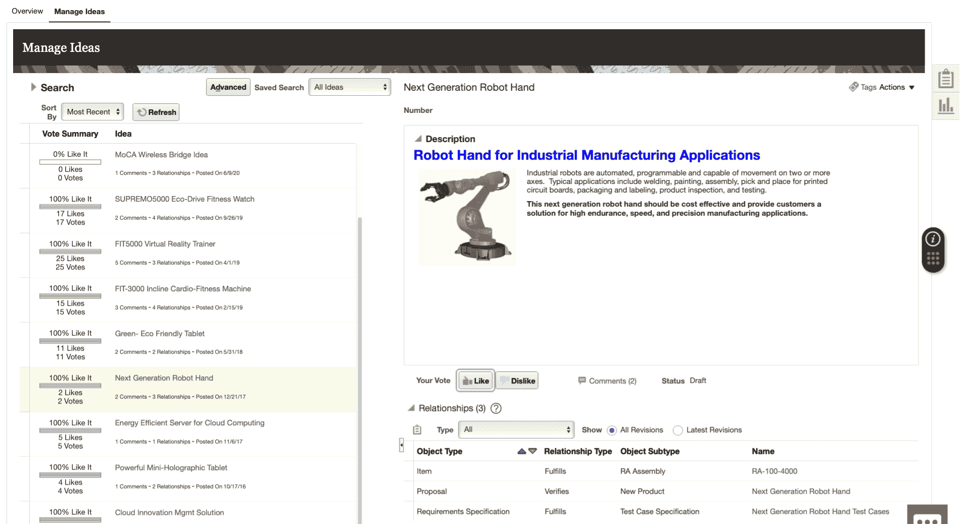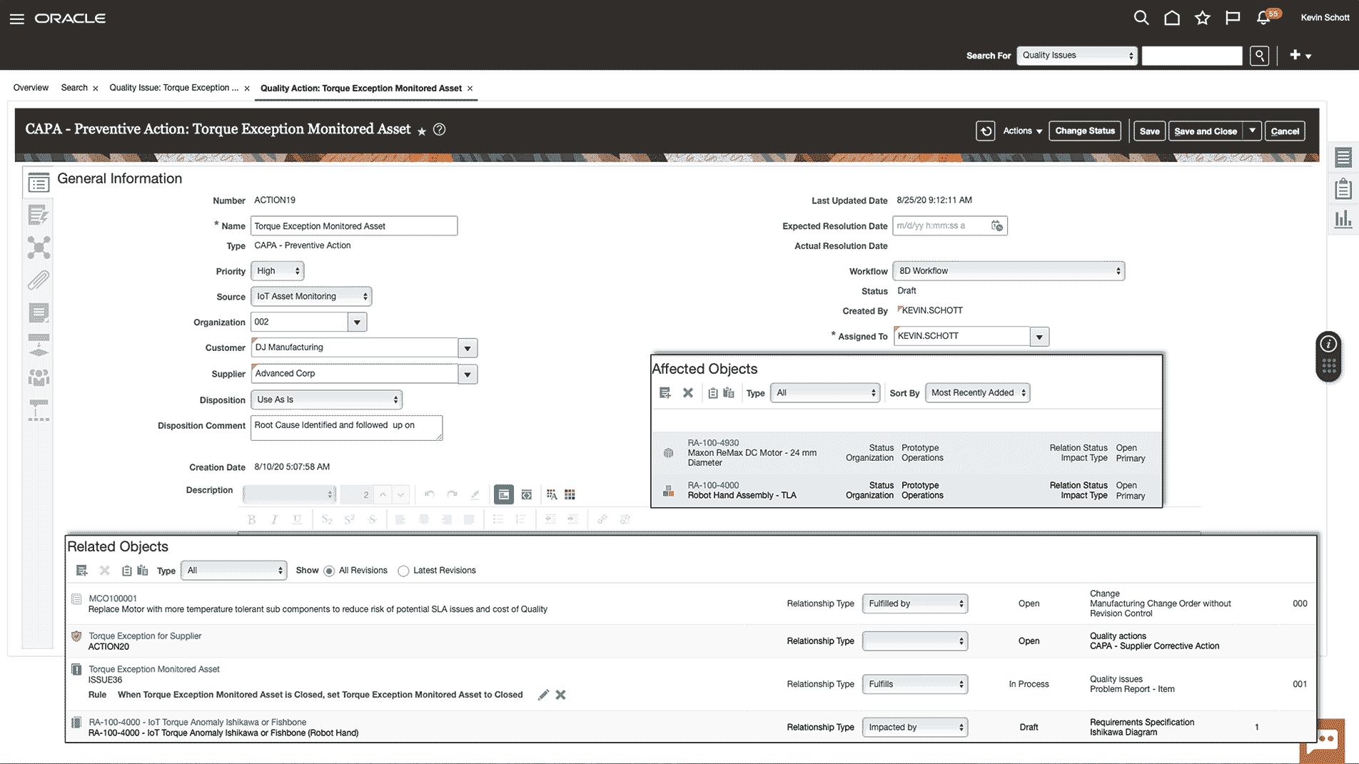 Silo-kwaliteitstoepassingen ondersteunen niet langer de eisen van klanten. Kwaliteitsbeheer is een geïntegreerde functie van Oracle Cloud PLM, ingebed in het Supply Chain & Manufacturing-pakket, dat één digitale draad creëert om productgegevens door de gesloten lus te sturen en de end-to-end kwaliteit te versnellen. Het resultaat is een betere klantenbinding, merkherkenning en ROI, en een sterker concurrentievoordeel.