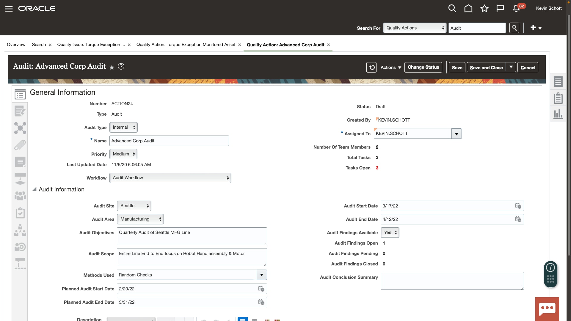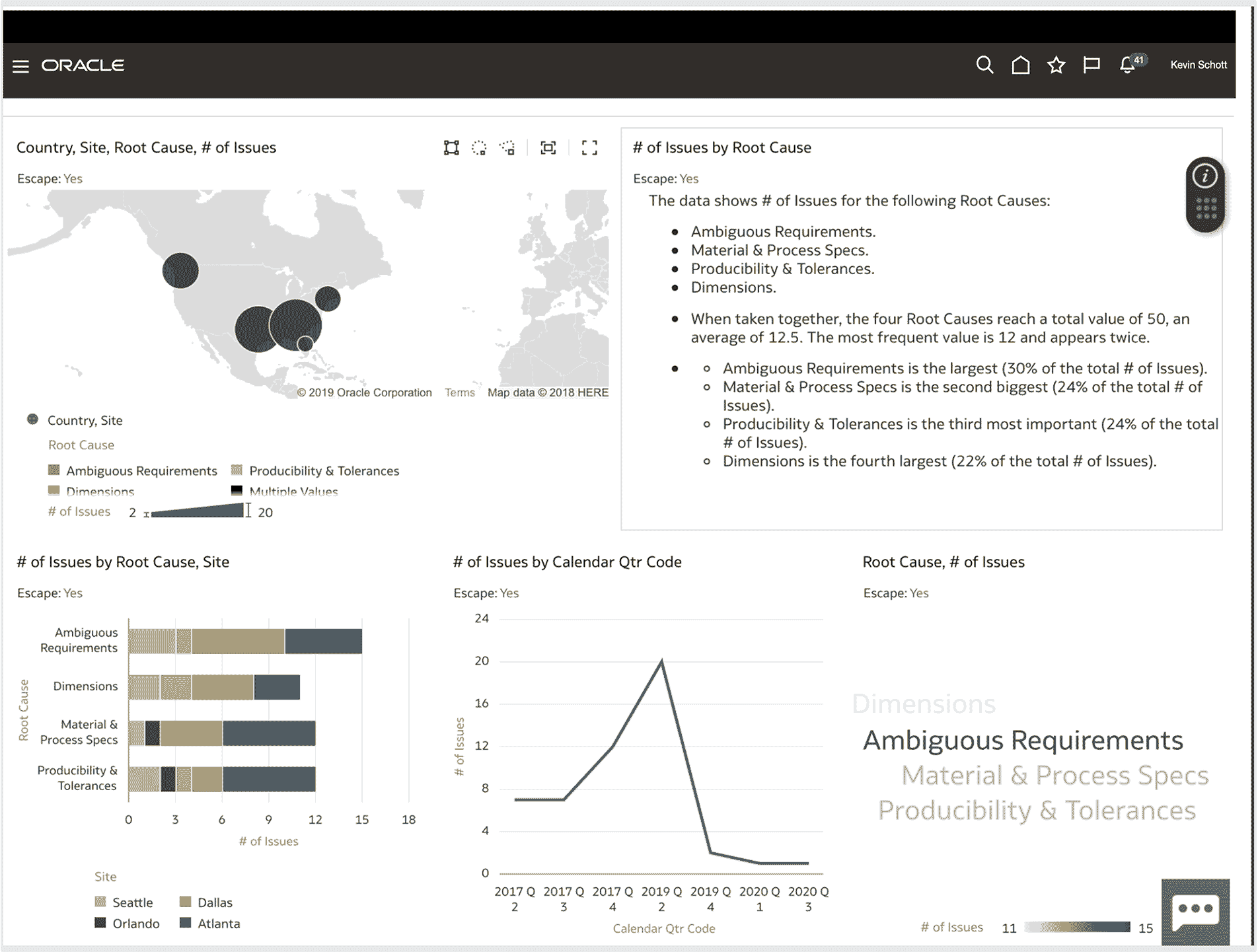Oracle Fusion Cloud Quality Management is een gesloten kwaliteitsbeheersoftware (QMS) in de cloud waarmee u kwaliteitsproblemen kunt identificeren, analyseren, corrigeren en voorspellen. Quality Management is een geïntegreerde functie van Oracle Fusion Cloud Product Lifecycle Management (PLM) ingebed in het Oracle Fusion Cloud Supply Chain & Manufacturing-pakket en onderdeel van elk proces en toegankelijk voor elk team.
