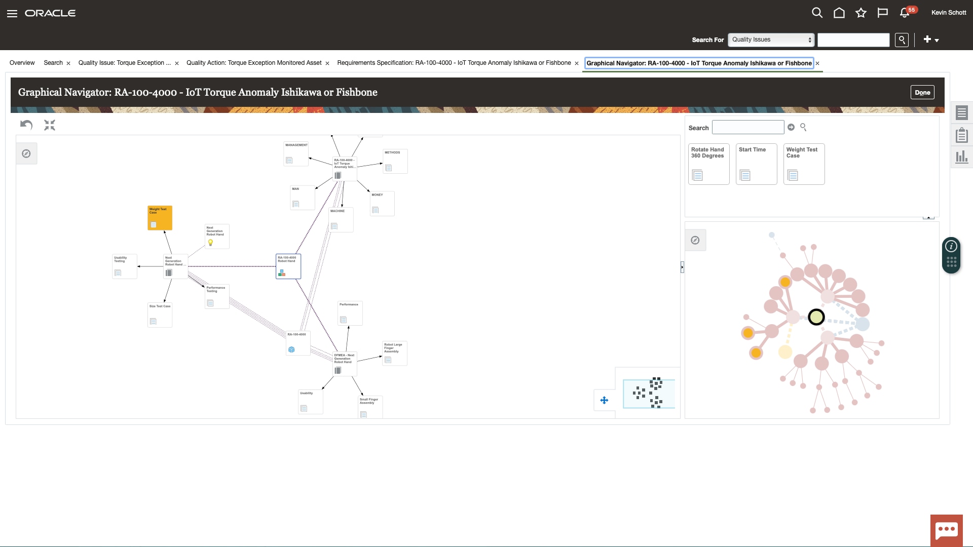 Een grafische weergave houdt elk kanaal in de organisatie eerder betrokken bij het kwaliteitsproces. In dit scherm kunt u op elke fase van de productlevenscyclus inzoomen om de relaties tussen onderling verbonden gegevens en de onderlinge afhankelijkheid van kwaliteitsproblemen beter te begrijpen. Hier kunt u de impact van een kwaliteitsgebeurtenis zoeken en zien.