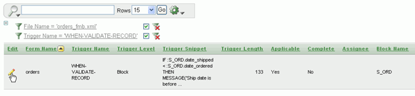 Notice that the WHEN-VALIDATE-RECORD trigger is shown. Select the Edit icon.