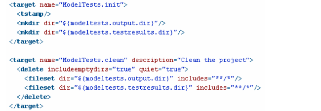 然后,我们更新 ModelTests.clean 和 ModelTests.init 目标以清理和创建测试报告目录: