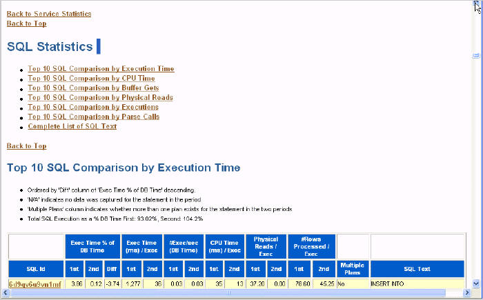 ![]() 可以浏览导致物理读取次数上升的 SQL 语句。单击链接“Top 10 SQL Comparison by Physical Reads”,随后它将显示一个由所有 SQL ID 和相应的物理读取操作组成的网格。可以单击 SQL ID 进一步了解信息。 当然,这只是一个示例而已。无论遇到什么问题,通过执行比较分析,你能够方便地向下深入了解信息,以找到导致两个时段性能不同的确切原因。该报表还列出了在所比较的两个时段中,数据库配置设置中所发生的所有更改。此外,由于所有量度和统计信息都根据所比较的两个时段的时间进行了适当的归一化,因此它们不必是同一持续时间。 在第 4 部分中,我将介绍数据仓库和集成特性。 返回系列索引 |