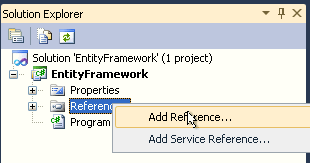 在 Solution Explorer 窗口中,右键单击 EntityFramework project 并选择 Add > New Item。