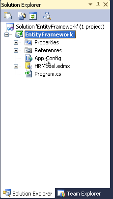 您将使用 Visual Studio 的函数导入工具将存储过程映射到用户定义的 .NET 方法。由于存储过程返回一个隐式结果集,因此在使用该工具之前,需要在 .NET 配置文件中定义结果集元数据。 在 Solution Explorer 窗口中,打开 App.Config 文件。