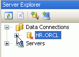 在 Server Explorer 窗口中,如果您已经有了一个 HR 模式连接,则将其展开并连接到数据库。例如,下面的屏幕截图将 HR 模式识别为 HR.ORCL。在 User name 和 Password 中输入 HR,然后单击 OK。跳到第 6 步。