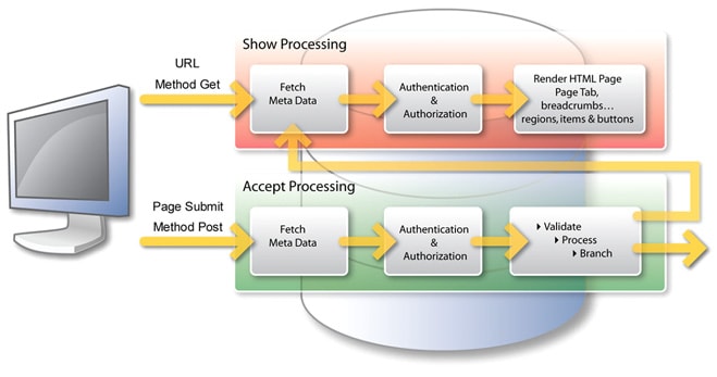 Tomando como base la imagen presentada en la Figura 1, podemos darnos una idea clara de cómo es que Oracle Apex funciona.
