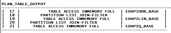 Otra gran ventaja de la opción In-Memory es que resulta ser transparente para las aplicaciones. No hay necesidad de modificar la aplicación para sacar provecho de esta funcionalidad. El analizador de consultas de Oracle seleccionará automáticamente el nuevo plan de ejecución si la tabla está en el “In-Memory Store”. Podemos verificar si la opción “IN-MEMORY” está siendo utilizada, buscando la palabra clave INMEMORY en plan de ejecución como podemos apreciarlo aquí: