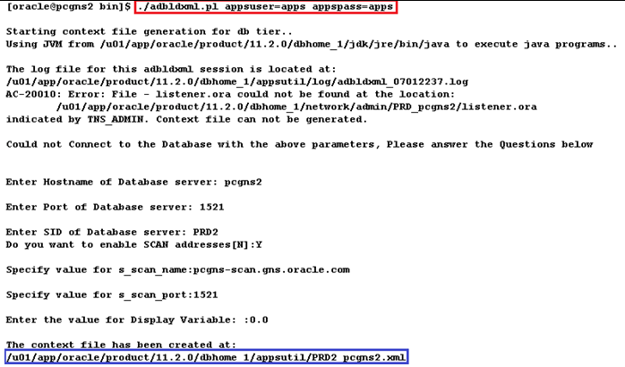 $ORACLE_HOME/appsutil/bin/adbldxml.pl appsuser=apps appspass=apps