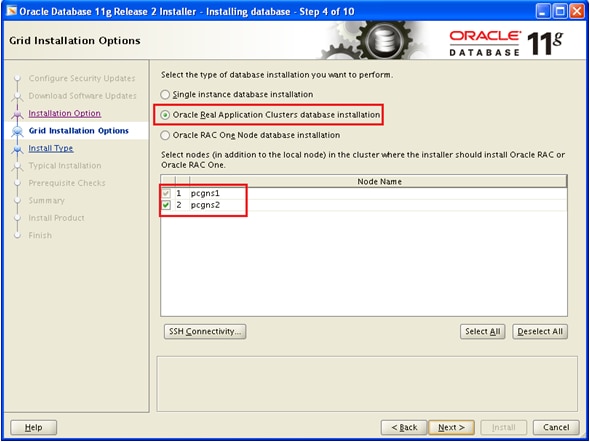 A continuación se adjunta alguna de las pantallas de la instalación del Software de Base de Datos con la opción para RAC.