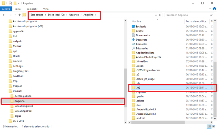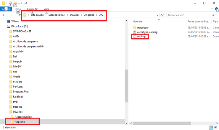 Este archivo se encuentra en la misma carpeta .m2 dentro de nuestro usuario.