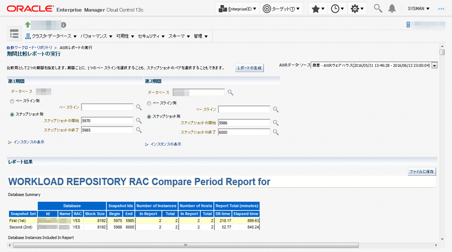 AWR期間比較レポートと同様、AWR Warehouseでは異なるソースDB間でも比較が可能です。