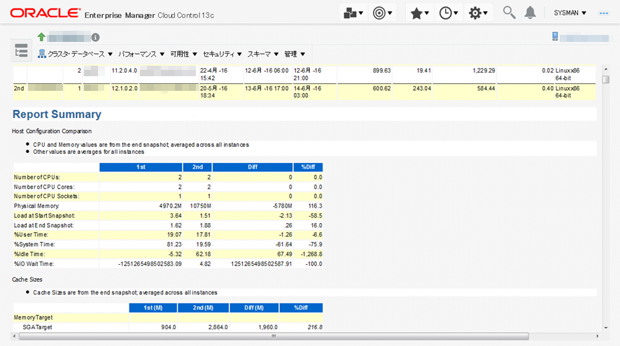| 異なるDBの性能比較(本番/検証)が容易になる (3.3 AWR期間比較レポート参照) | |
