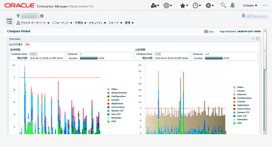 こちらは通常のEMCCにも搭載されている機能ですが、AWR Warehouseコンソールから使用した場合、CAW、及びソースDB上の複数DBの情報を1画面から分析することが可能となります。