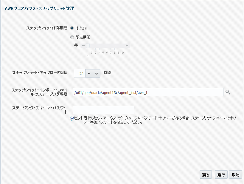 なお、AWR抽出間隔(スナップショット・アップロード間隔)はAWR Warehouse構成時に変更することが可能です。